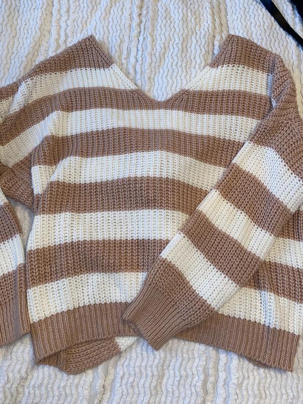 Свитер в полоску с интересно открытой спиной.Фото на теле могу сделать