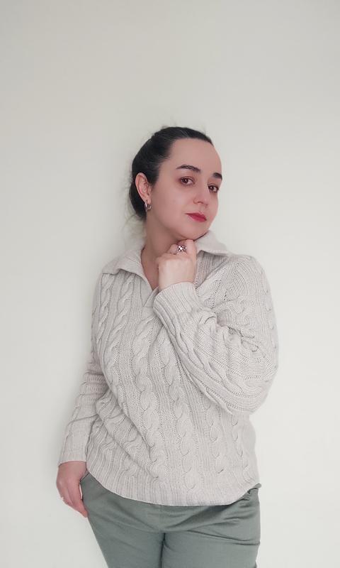 Теплий светр поло з італійського мериносу 90% з кашеміром 10%. Ручна робота. Ог 50 см Довж 61 см Рукав 61 см