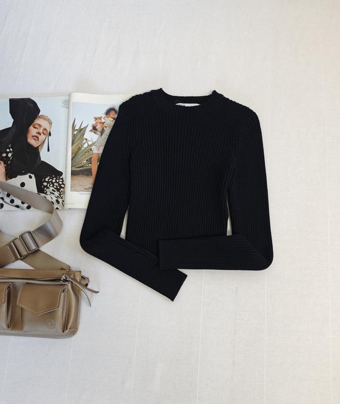 🌿чорний светр від Zara гарно тягнеться, тканина цупкий якісний рубчик Розмір:M Заміри:ПО грудей 30 см, довжина 40 см, рукав 58 см