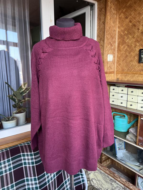 Светр кольору марсала, стан нового. З цікавим декором, під горло. Заміри Довжина 69 НОГ 64 Довжина рукава 68, рукав реглан, довжина від горловини