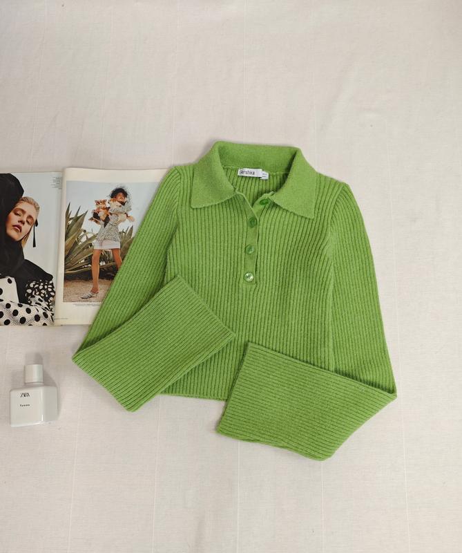 🌿зелений светр Bershka з широкими рукавами, м'який і теплий, гарно тягнеться Розмір:S Заміри:ПО грудей 34 см, довжина 43 см, рукав 63 см