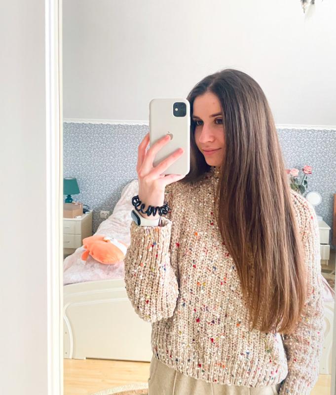 Затишний в’язаний светр 🧶 Стильний, теплий і дуже комфортний – те, що потрібно для холодної погоди! ✔️ Гарне фактурне плетіння з кольоровими вкрапленнями ✔️ Вільний крій для зручної посадки ✔️ Ідеально підходить для casual-луків 📏 Розмір s-m 🔹 Довжина – 51 см 🔹 Ширина – 55 см 🔹 Довжина рукава – 56 см 🔥 Пиши в дірект, поки є в наявності!