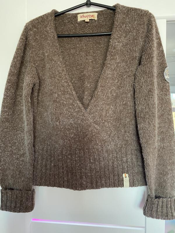 Кофта жіноча коричневого кольору “Whappa”Заміри: ОГ-94; довжина-54; рукав-60; плече-10. Спереді V-образний виріз на запах.; тепла.