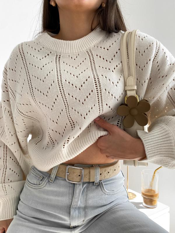 Актуальний вкорочений светр від НМ в молочному кольорі , фасон оверсайз