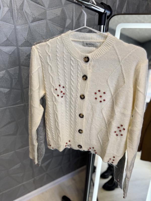 Светр на ґудзиках в сірому і білому кольорах з камінчиками розмір s дзвоніть **********