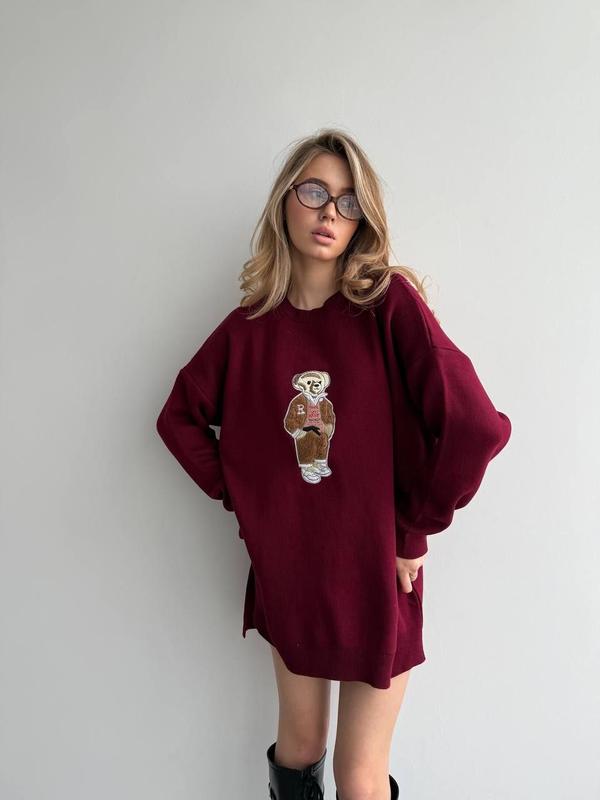 Удлиненный свитер Мишка Мелкая машинная вязка: 50% бавовна, 50% акрил Размер единый 42-48 Производство Турция🇹🇷 Цвета: кремовый и бордовый Все фото РЕАЛЬНИ❗️ 🔹Длина спереди 70 см 🔹Длина по спинке 76 см 🔹Полуобхват по груди 65 см 🔹Длина рукава от плечевого шва 46 см 🔹Длина рукава от горловины 72 см Цена 1799 грн