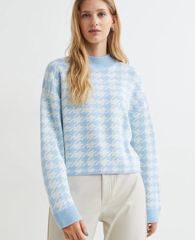 Блакитний светр в гусячу лапку h&м