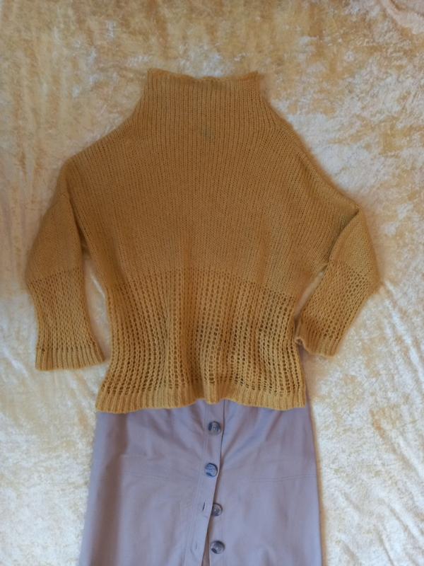 Свитер желто горчичного цвета, длина 61см,рукав укороченный.