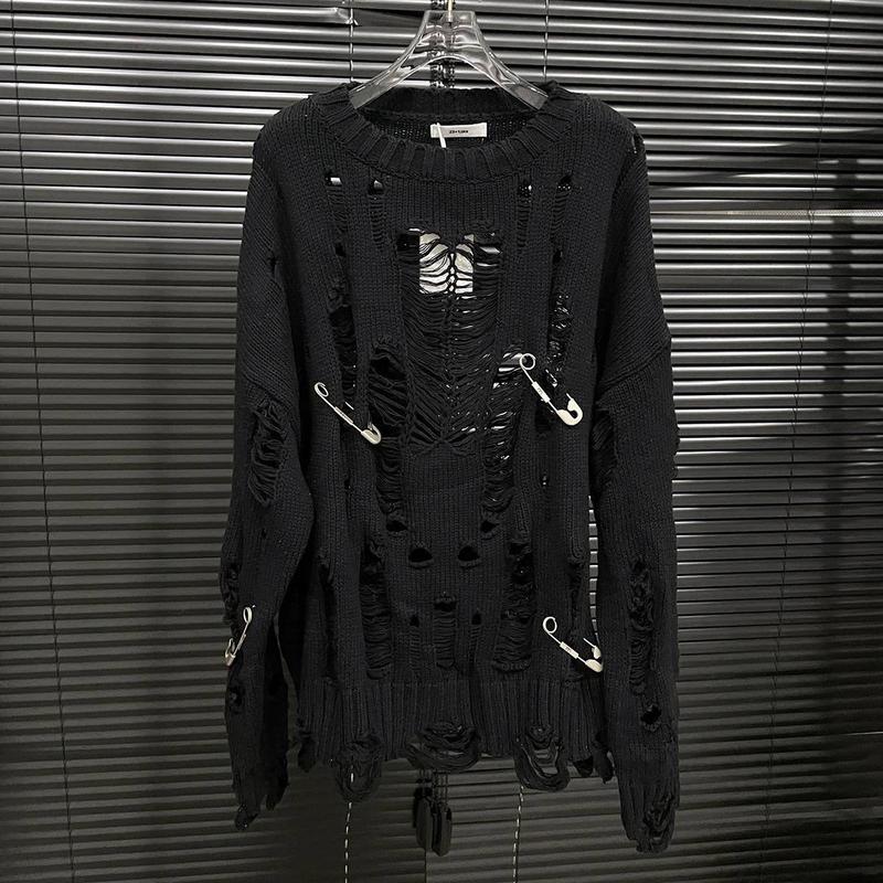 NEW NEW NEW 👆Ефектний рваний светр з матовими срібними шпильками Код 7776 Нитка бавовна Кольори : молочний, чорний ЯКІСТЬ ЛЮКС🫶