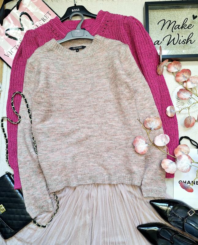 Утеплюємося красиво та якісно! М'який, теплий, приємний і затишний светр кольору пудри Top Secret. Чудово сидить на фігурі та добре поєднується з різними речами та взуттям. У складі вовна та мохер. На манжетах і горловині додана дуже актуальна в цьому сезоні люрексова нитка, що надає особливого шику. ✔️Стан: ідеальний ✔️Розмір: UK 10, EUR 38, S-M ✔️Заміри: плечі 37 см, довжина рукава 57 см, ширина 45+ (добре тягнеться), довжина 55 см ✔️Top Secret (Топ Сікрет) — бренд, заснований 2012 року в Манчестері. Top Secret — це одяг у стилі streetwear (т.н. "вуличний одяг"). Напрямок взяв початок у Каліфорнії серед шанувальників серфінгу та скейтбордів. Одяг Top Secret для молодих людей, які віддають перевагу стилю та комфорту в повсякденному житті. ✔️Дивіться інші мої пропозиції. Знижки роблю при купівлі від 2-х і більше речей. ✔️Всім приємних покупок 💗