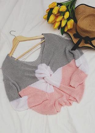 •ПОГ 53 •ПОТ 46 •ПО внизу 40 •Довжина 56 •Рукав спущений 68 від горловини Без дефектів Надзвичайно красивий светрик Вузлик іде на спинці...але за бажанням можна одягати і так і так Розмір зазначений S-M 88% акрил 12% поліамід