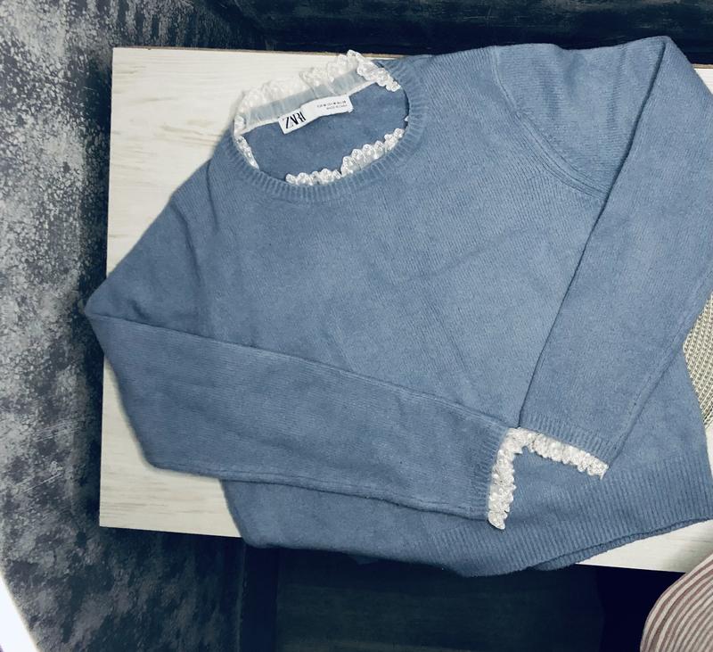 Свитер бреда zara голубого цвета с сетевыми вставками белого цвета 42-44 размера