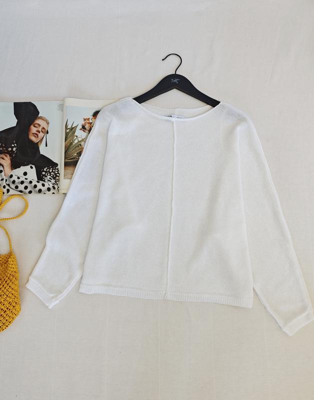 🌿легкий білий светр від Zara крою оверсайз, містить льон 11% Розмір:S Заміри:ПО грудей 65 см, довжина 56 см, рукав від горловини 66 см