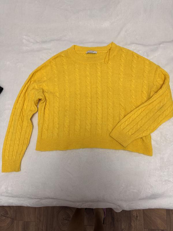 Желтый, не плотный сверт. Подходит на М и Л размер Стан хороший. Яркий цвет