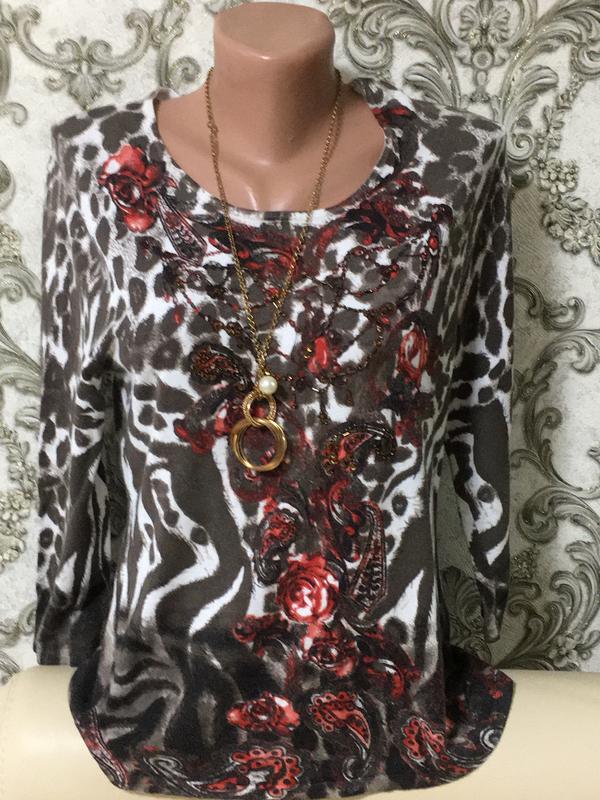 Натуральная ткань усыпана мелкими стразами .Длина 65 грудь 96 рукав 47 очень хорошо тянется