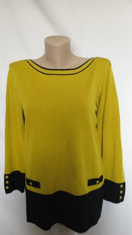 гарний светрик,колір сонячний теплий гірчичний і чорний,довжина64,пог50,рукав54