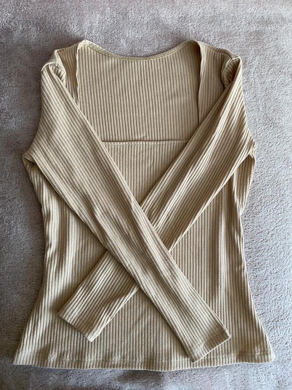 Бежева приталена кофтинка, має квадратний виріз на грудях