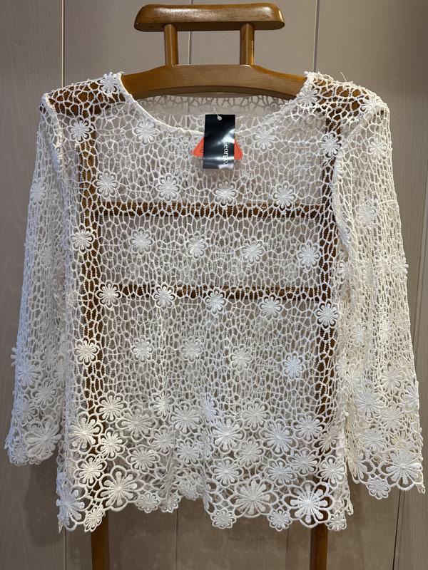 В наявності гарна кофточка-топ фірми GEORGE. Розмір вказаний 12, але за вимірами більше йде на 14. Склад: 100% поліестер. ПОГ-54, довжина — 65, плечі — 42, довжина рукава — 52, ширина низу — 57.