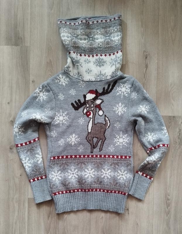 Атмосферний новорічний светер з хамутом, затишний і теплий. Чудовий варіант для фотосесії) Розмір М, довжина 62, рукав 60, ПОГ 42 см