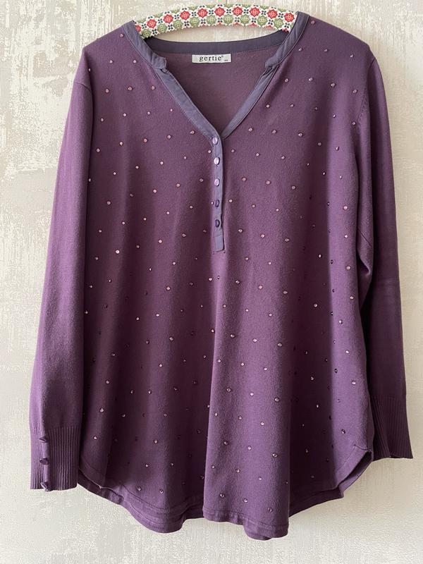 Нарядный свитерок со стразами 52-54 размер, можно и на 56.симпатичные пуговички спереди и на рукавах. ПОГ 56, ПОТ 58, ПОБ 65, длина 73, рукав 57