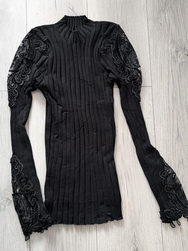 новый, но без этикетки. Насыщенно черный, просто фото не передало. Растягивается, очень красиво смотрится у кого узкие или среднего размера плечи