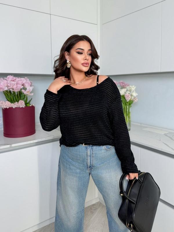 Модель №679. Весняна прогулянкова кофта з довгим рукавом. В'язання трикотаж. Тканина сильно тягнеться. Склад: Поліестер - 95%, Бавовна - 5%. Колір: Фреза, Чорний. Розміри 50-52, 54-56, 58-60,