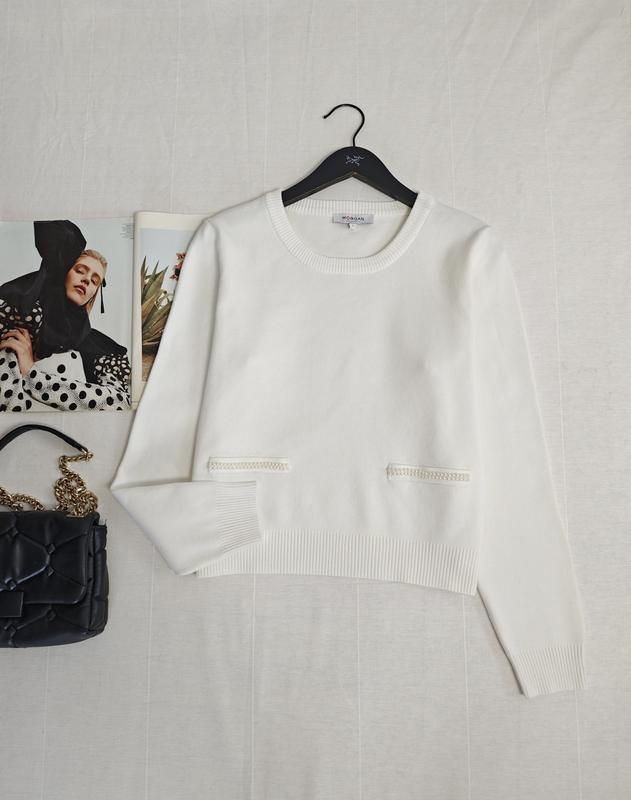 🌿белый свитерик Morgan свободного кроя, ткань плотная вязка, красиво держит форму Размер:L Замеры:ПОГ 52 см, длина 53 см, рукав 61 см