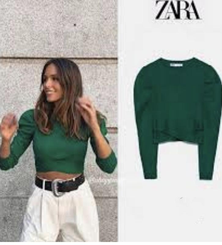 🌿зеленый свитерик от Zara с пышными рукавами, красиво тянется Размер:М Замеры:ПОГ 37 см, длина 43 см, рукав 60 см
