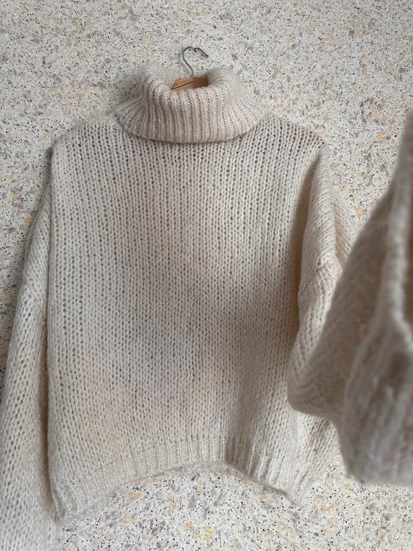Молочний якісний светрик , вовна у складі та альпака, не колеться . Стан відмінний Горло висота 27 Довжина по спинці69 Довжина по боку 50 Рукав від пахви 55 Рукав до горла 64