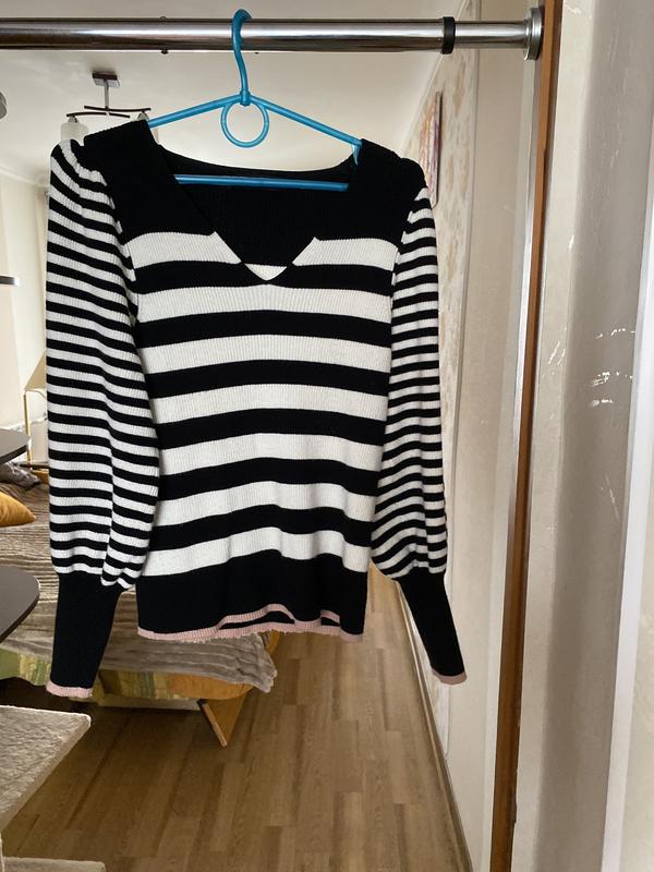 Груди пройдуть до 102 см, довжина 52 см, рукав 58 см віскза та поліестер. В рубчик