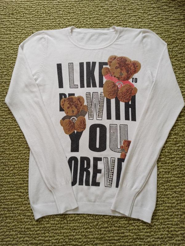 тоненький, бавовняний светрик молочного кольору на розмір s-m, в складі 47% бавовни та 20% віскози ,дуже приємний до тіла, але має недоліки, показала на останніх фото ( відсутні декілька камінчиків та на плечі ледь помітна плямка ) , в ціні враховано