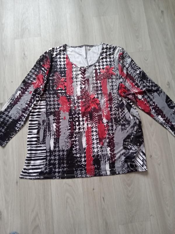 дуже гарний яскравий стрейчовий,приємний до тіла,пог75см пот 75смпос75см рукав 63см довжина 80см покупкою будете задоволені,Не Секонд