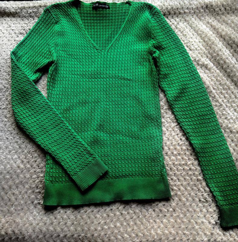 Светр розміру М - сяде на параметри ОГ 85-99 см | ОТ 65-73 см | ОС 90-99 см. Трикотаж - добре тягнеться, тканина мʼяка і дуже приємна до тіла. Одягався 2 рази - в ідеальному стані.