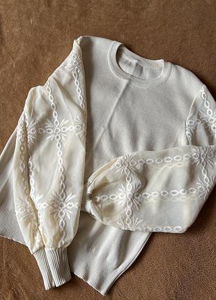 Нова ніжна кофта нова з вишитими рукавами. Розмір S/M. Переходь та дивись ще мої обʼяви! 🙂