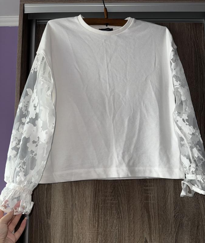 Дуже цікавий светр з прозорими рукавами. В складі Котон.