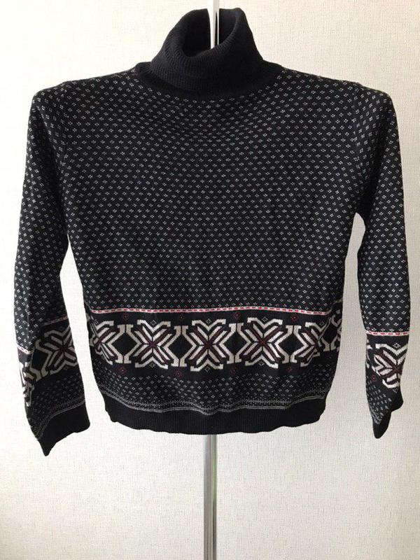 Чорний светр з орнаментом zarakhit Обидві сторони ідентичні приємний до тіла Довжина по спині 50 Рукава 50 ОГ 100 см Горло 15 см