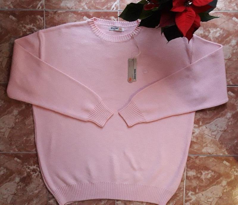 Фірмовий класичний светр італійської молодіжної фірми malcom. Враховуючи колір, краще підійде для жінки, хоча фірма чоловіча. Модель має досить товсту в'язку цікавої фактури. Склад: 50% котон, 50% акрил. Високий зріст. Розмір: зазначено 5xl . Для жінки підійде на 5xl , для чоловіка на 3xl. Орієнтуйтеся на заміри! Заміри: ПОГ 70 ПІТ 65 плечі 62 довжина рукава 64 довжина виробу по спинці 75. Дивіться багато інших фірмових чоловічих і жіночих светрів, пуловерів і кофт в моїх оголошеннях.