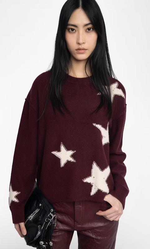 100% кашемировый свитер - Эффект состаренных звезд с жаккардовым узором - Круглая шея - Длинные рукава