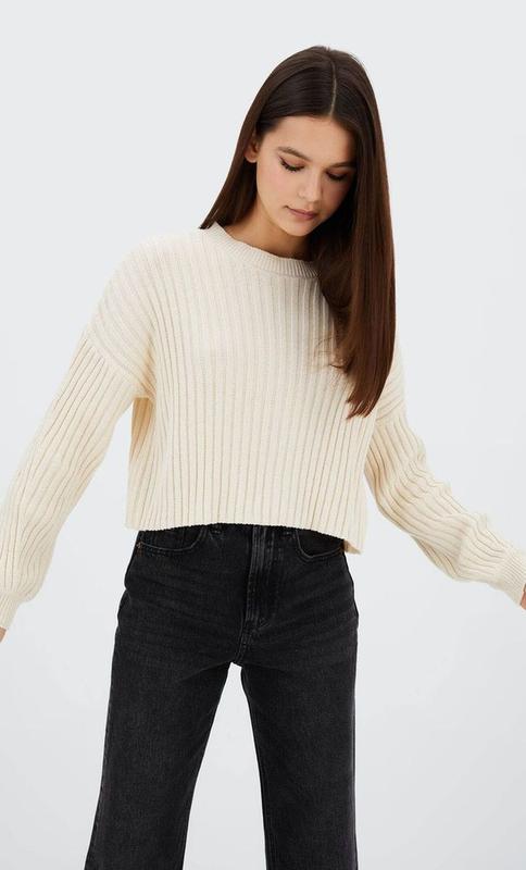 Жіноча бавовняна укорочена вʼязана кофтинка в гарному стані та якості, стильна модель, вільного крою, повністю ціла, цупкий, добротний матеріал, молочного кольору