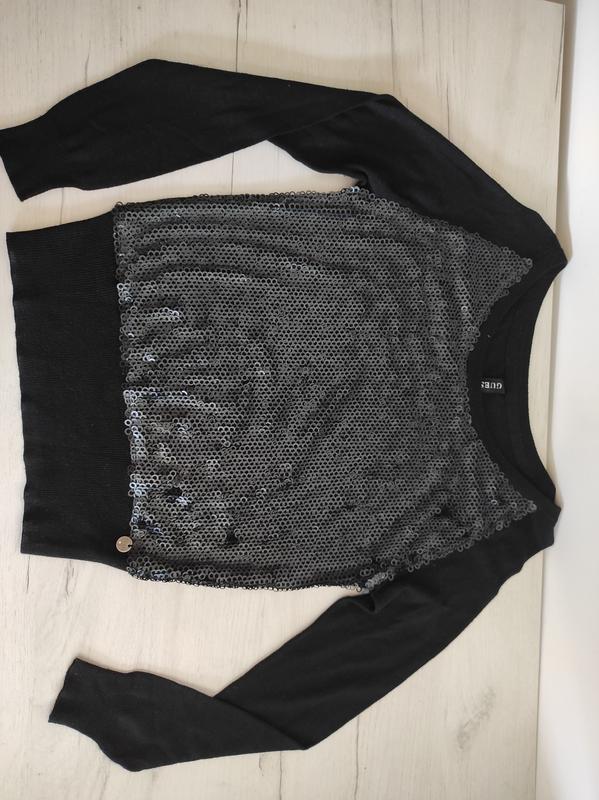 Свитер от бренда Guess из шерсти в черном цвете с пайетками. Теплый и стильный вариант для холодных дней. Размер s.