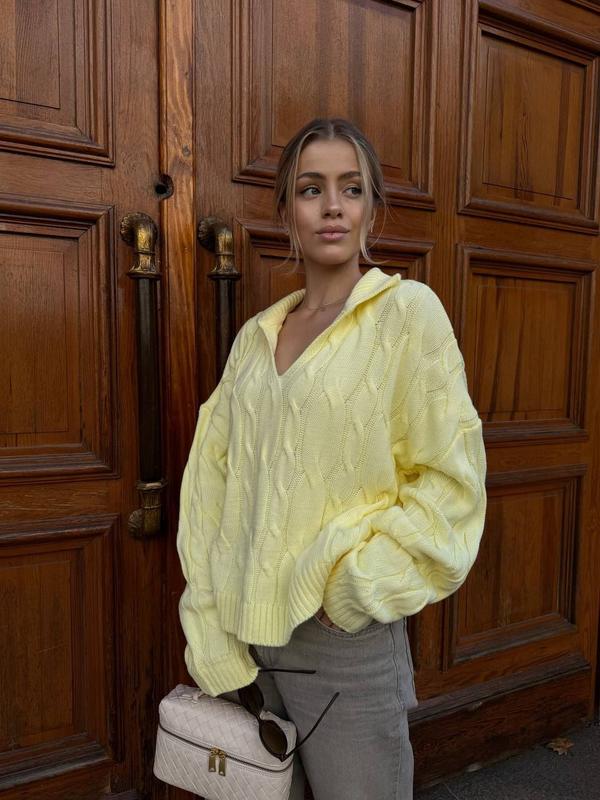 🥰Новинка Фото вживу 🤤 Светер 🔥 ▫️Модель: 128/1 ▫️Виробник Туреччина - вʼязка (відмінної якості👌) ▫️Колір: чорний, лимонний, барбі, молочний. ▫️Розмір: універсальний 🕊️Жіночий светр оверсайз із ніжної пряжі пастельних кольорів. Має виразний рельєфний в’язаний візерунок «коси», що додає фактурності. Горловина виконана у формі V-вирізу з відкладним комірцем-поло, що робить образ більш сучасним та стильним. Рукави довгі, трохи приспущені, з широкими манжетами.