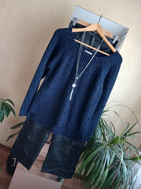 Длиж 61см переда, 67 Длж по заду. Гр 46см рукава 62см в вязке есть темно синяя пайеточка, имеет кофточка народный вид. Горловины лодочкой, но не глубокая. Кофта новая не хватает только выборочки.