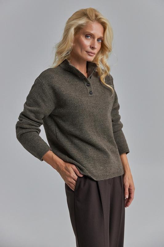 Елегантний светр поло кольору мокко на ґудзиках з преміальної пряжі вовна меріноса з додав...