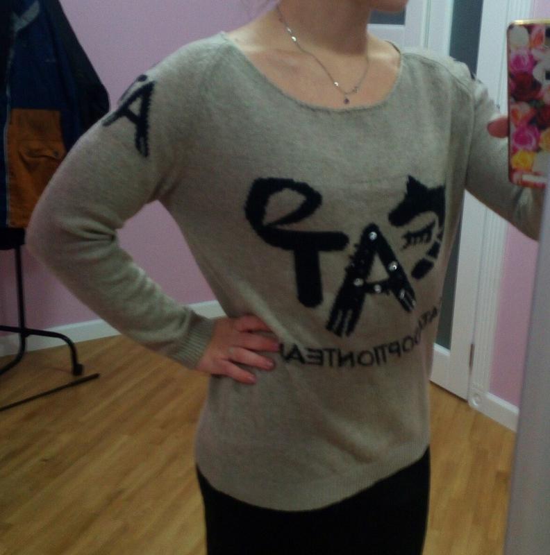 Светр з малюнком, на рукавах також вільного крою, підійде як на М так і розмір L