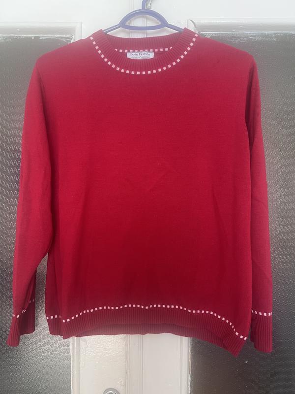 Червоний светр в ідеальному стані. Склад: 50% шерсть, 50% поліакрил. Заміри: Напівобхват грудей - 49 Напівобхват знизу - 46 Довжина по спинці - 56 Довжина рукава від плеча - 52 Светрик майже не носився, трохи тягнеться.