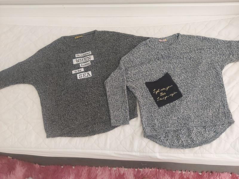 свитер olko M. один новый с серебристыми надписями, и с карманом - бу. в идеальном состоянии. подходят на С и М размер. хороший состав хлопка и шерсть.