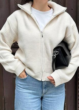 Knit Zip Bomber Трендова модель з oversize посадкою та фактурною в’язкою. Блискавка та комір-стойка додають зручності й стилю💜 Виробник: Туреччина Розмір: універсальний(42-48) Тканина: 80% Акрил, 20% вовна Колір: шоколад, молочний Заміри Довжина: 52см Обʼєм грудей:116см Довжина рукава від плеча: 60см №9998 Відправка Новою поштою! Повна передоплата, або наложений платіж з мінімальною передоплатою 200.00 грн‼️