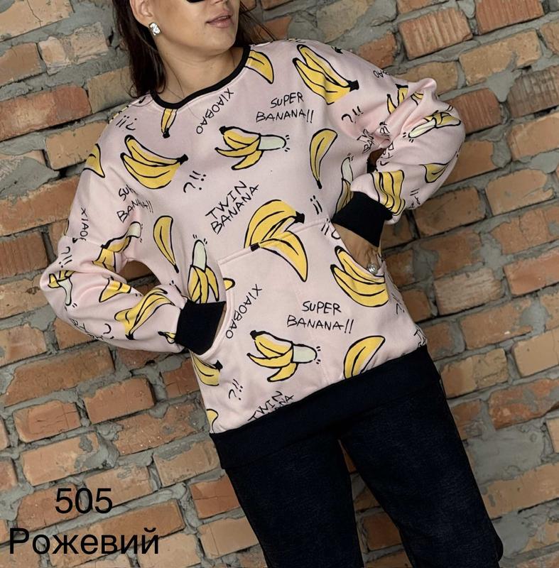 Акція ❤️ Для сміливих ❤️🔥❤️🔥❤️🔥 *💙💛БАТНИК ЖІНОЧИЙ БАНАН 💛💙* 😍Сучасна модель для сучасних дівчаТ. Присутня кишеня-кенгуру. На рукавчиках та внизу виробу еластичні манжети. *🌱Сезон: осінь/весна.* ✂️Матеріал : трикотаж. 🌟Гарної якості *Країна виробник: Україна* 🏷 Розміри: універсальний 42-48. Параметри моделі 87-74-94 Зріст 169см