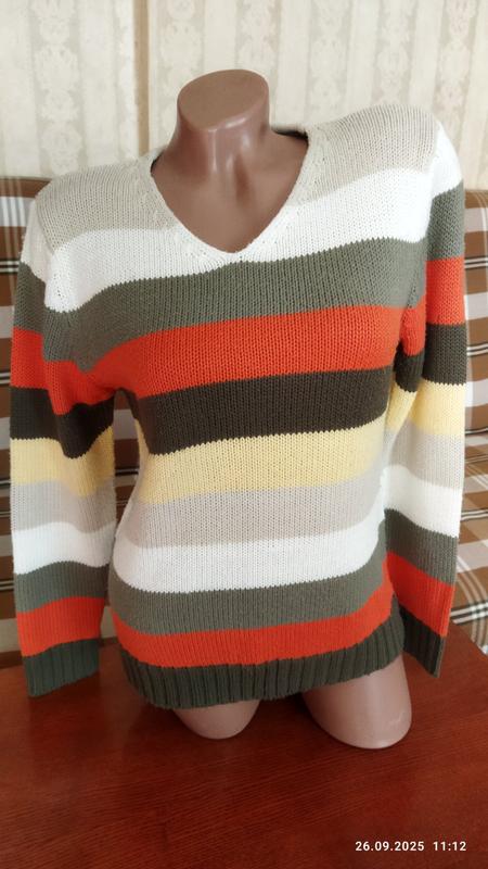 100% акрил. Довжина — 64 см, рукав — 62 см, ширина — 53 см. Нюанс — ковтші.