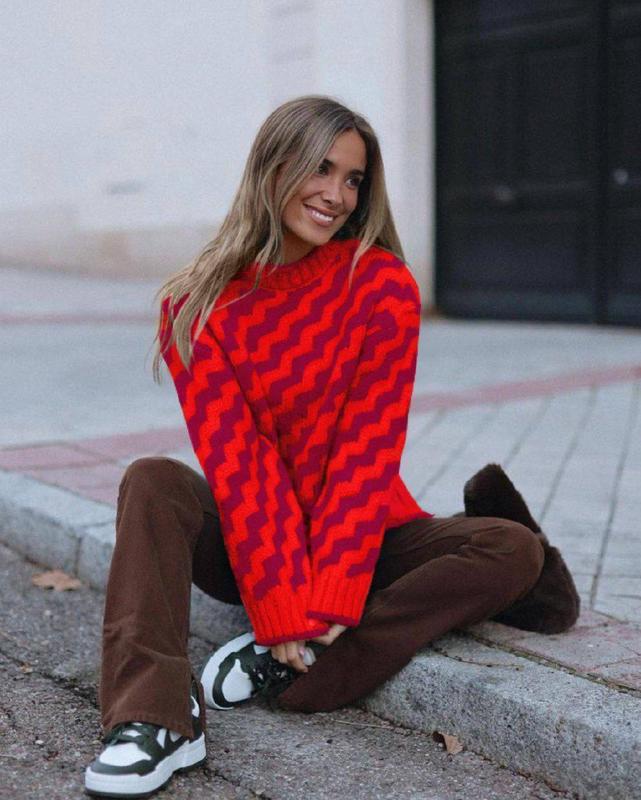 🔝Светр с зігзагами як у Маngo❤️ виробництво Туреччина🇹🇷 преміум якість (70% akril/20%polyester/10%еlite) розмір oversize 42/48 довжина 70 см рукав 54 см погруддя 106 см колір: червоний